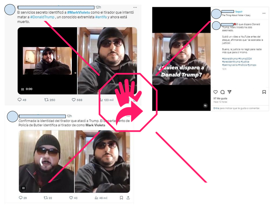 “El que disparó a Donald Trump, Mark Violets ha sido asesinado…”, se lee en una publicación en Instagram. Otras versiones con el mismo nombre y las mismas imágenes se compartieron en X.