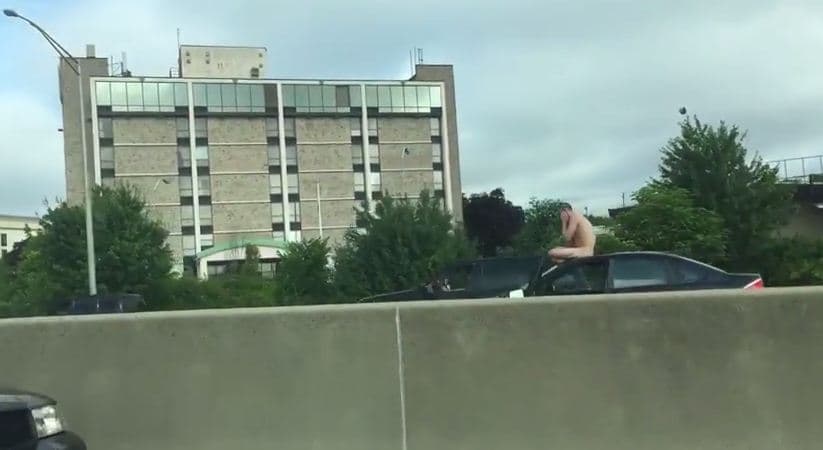 Un hombre sin ropa sentado en el techo de su carro llamó a la policía para asistencia.