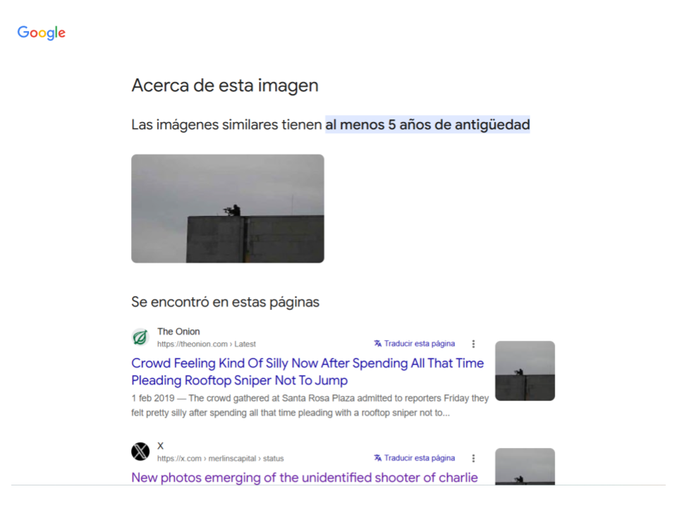 Imagen 2: El hombre apuntando con un arma larga desde el techo de un edificio que aparece en esa imagen NO es quien disparó contra el conservador.