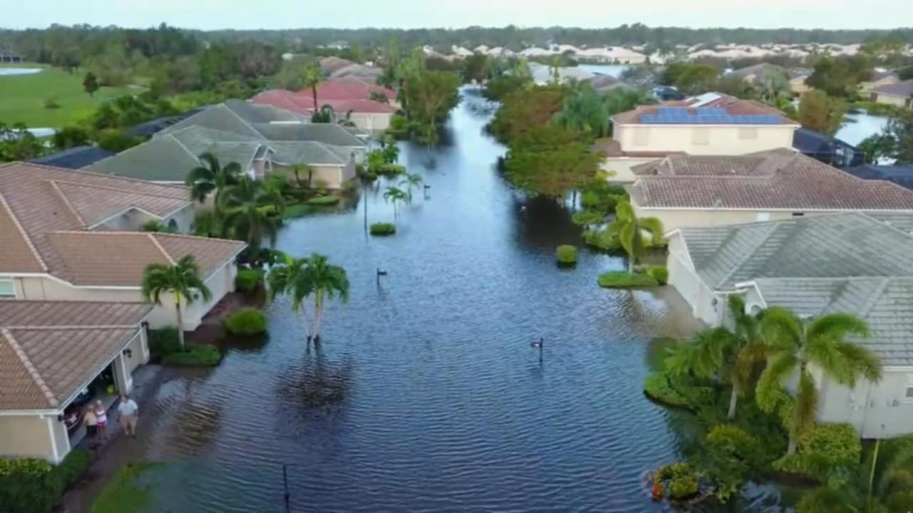 Imágenes aéreas muestran cómo el agua tomó las calles de un vecindario en la ciudad ubicada en la costa oeste de Florida.