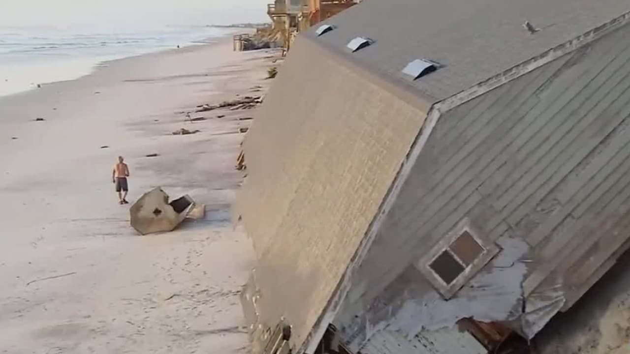 Una casa colapsó en la playa con el paso de la tormenta tropical en el norte de Florida, cerca de Jacksonville, el 11 de septiembre. Según el equipo de bomberos y rescate del condado St. Johns, varias otras casas fueron dañadas.
