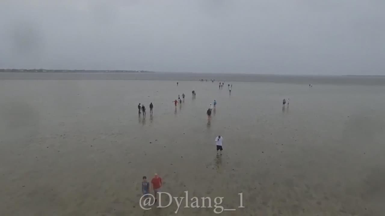 Imágenes de dron muestran a personas caminando por lo que era mar tras la retirada del agua