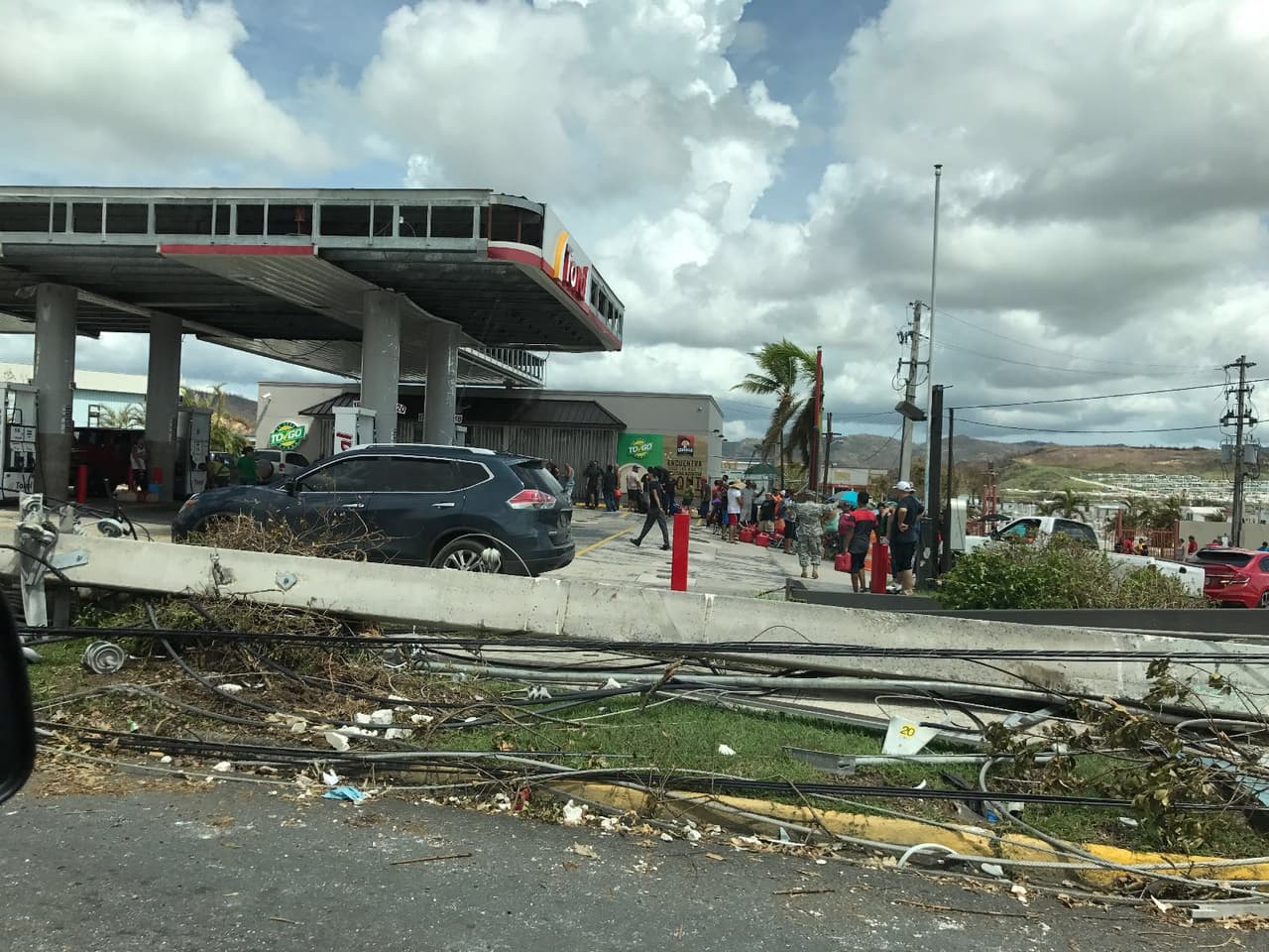 Así describe Carrasquillo la situación: "Horrible. Horrible. Hay gasolina pero las líneas son interminables, y te dan una carga de $10 a $15 máximo por persona. Las compañías eléctricas privadas no se ven en ninguna parte en las calles. No vemos que se esté haciendo nada para arreglar la red eléctrica o personas sin agua. No hay ayuda. No vemos ninguna ayuda, y no hay suficiente policía en las calles para verificar que todo está bien, así que hay gente que va a robar a las calles. En realidad, hace unos instantes, unos pocos hombres armados fueron a una gasolinera para robar gasolina a sus coches a punta de pistola. Además, la comida es limitada. Si vas a una panadería, te dan una libra de pan por familia".