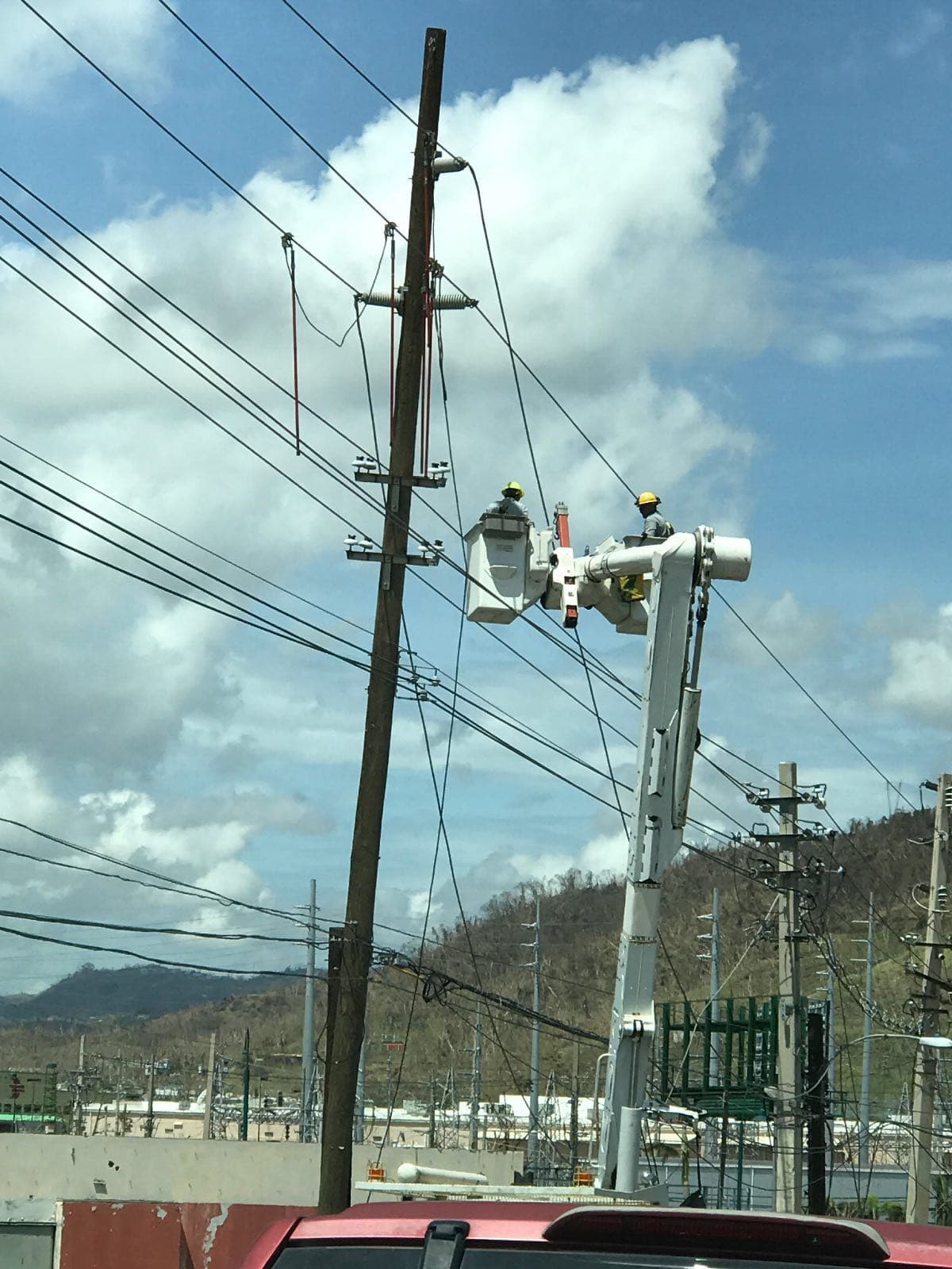 Estas son algunas fotos compartidas por ella que muestran la Universidad del Turabo, la gasolinera y una reparación eléctrica en proceso.