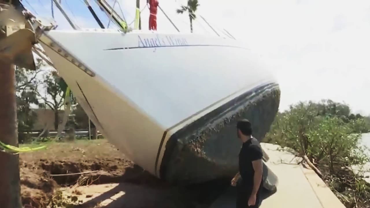 huracán Milton causaron devastación en el condado de Sarasota, Florida. Las fuertes ráfagas sacaron del mar a un velero de gran tamaño, que continúa en la calle. En el área también se registran vías bloqueadas por árboles caídos.