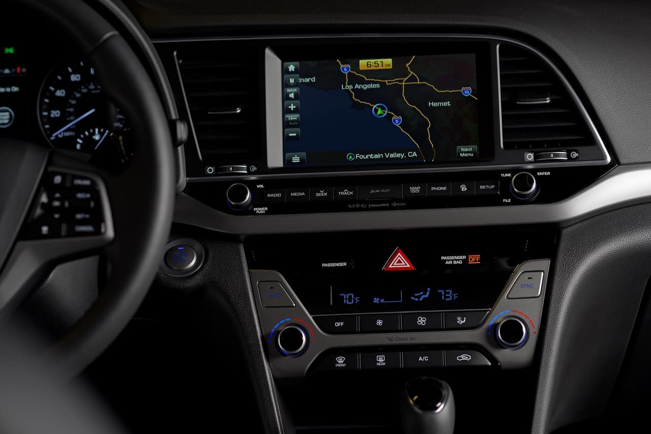 Los detalles de confort no son ajenos al Hyundai Elantra 2017 como por ejemplo el sistema de memoria para los espejos, asientos eléctricos y climatizador automático con desempeñado automático y espejo retrovisor anti-deslumbrante. Además la pantalla delantera multifunción de 7 pulgadas con cámara de vista trasera y navegador, streaming, puerto USB, conexión auxiliar y reconocimiento de voz, entre otros ayudan a cimentar las credenciales tecnológicas del nuevo compacto. Según el nivel de acabado también puede sumar un sistema de sonido premium Infinity con 8 bocinas y el mecanismo de apertura del maletero automático.