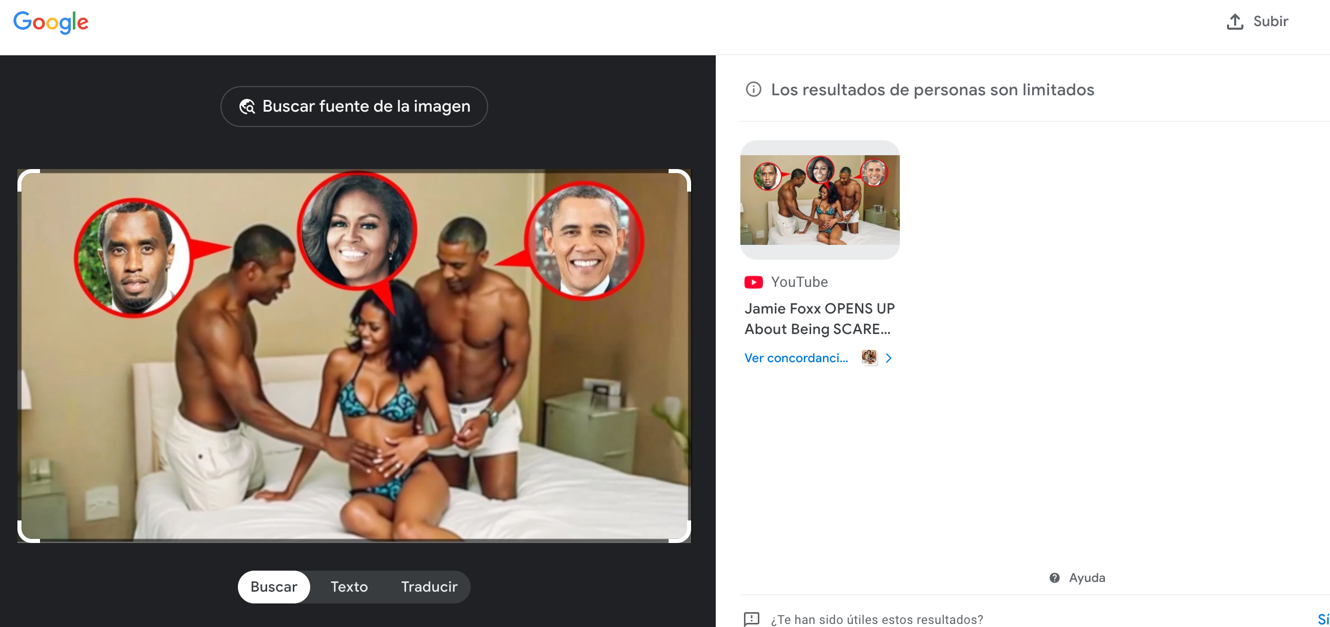Es falsa la fotografía que supuestamente muestra al rapero Sean 'Diddy' Combs junto con el exmandatario Barack Obama y su esposa Michelle semidesnudos en la cama de una habitación. Dos análisis de detección de inteligencia artificial arrojaron que la imagen es una creación digital. Además, la publicación en redes sociales que la difunde dirige a una web de contenido patrocinado que en sus términos y condiciones establece que el espacio “no garantiza” la precisión de los materiales que en él se comparten. Además, no hay reportes oficiales o mediáticos que confirmen que esa imagen se filtró recientemente. Lee aquí cómo escogemos y asignamos nuestras etiquetas en elDetector.