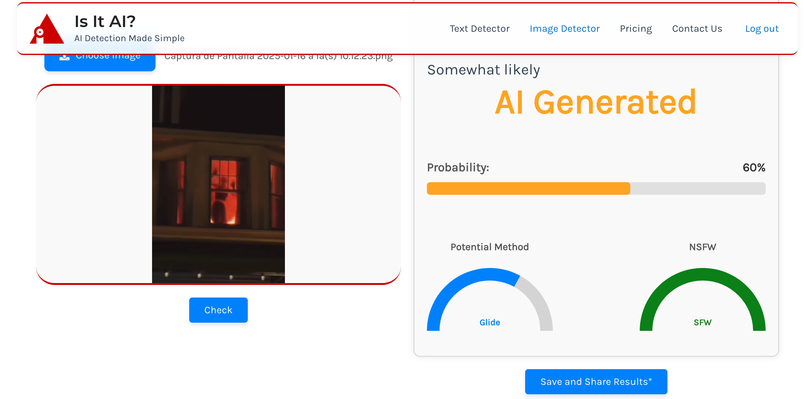También IsitAI, otra herramienta gratuita, determinó con un 60% de probabilidad que la imagen fue generada mediante IA.