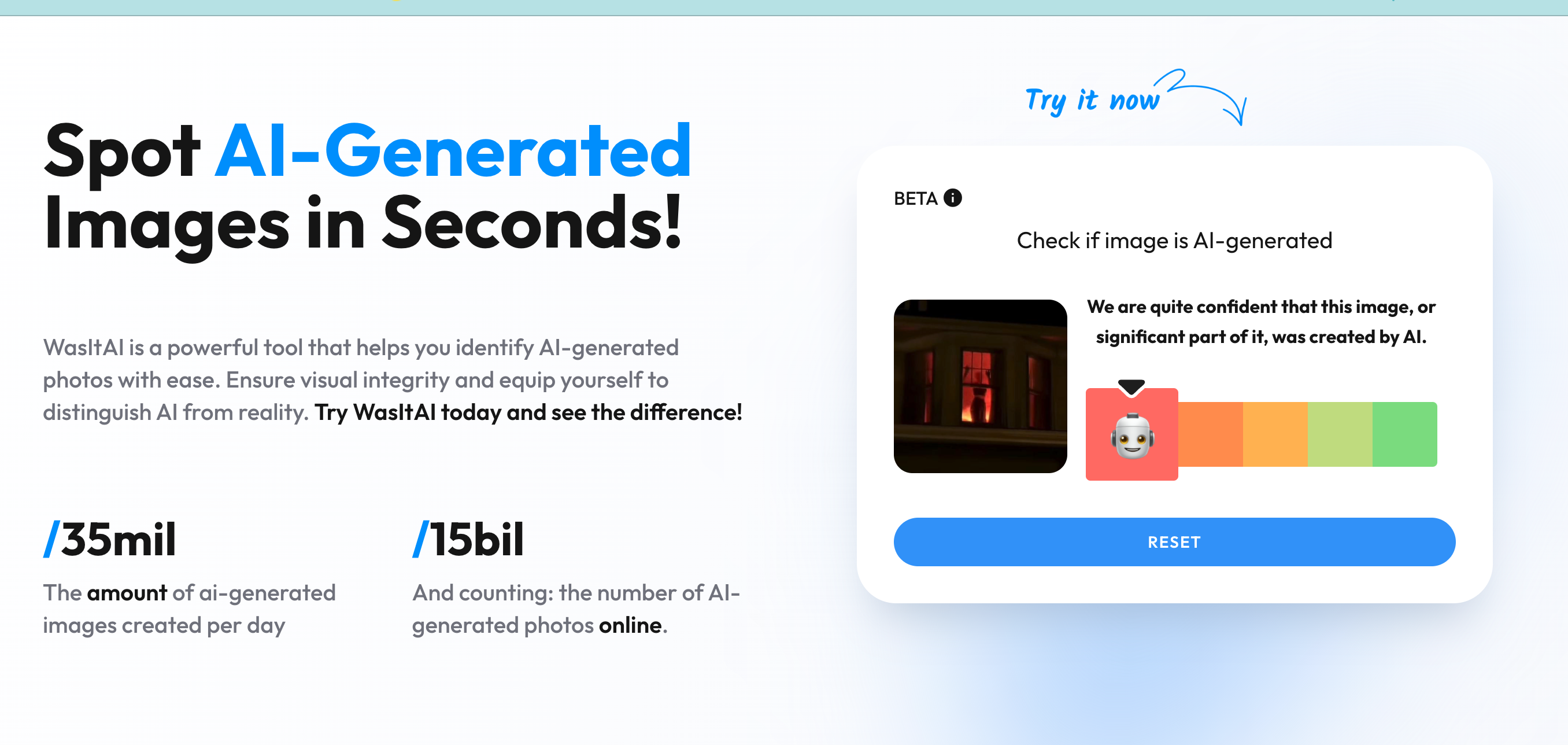 La herramienta gratuita WasItAI determinó que “una parte significativa de la imagen se había creado con IA”.