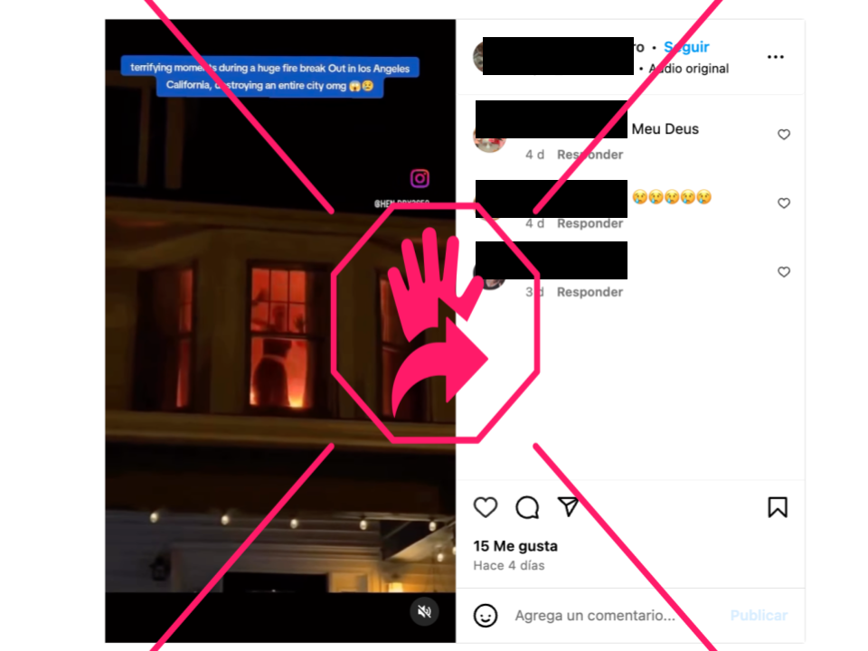 Es falso que esa imagen de una mujer en la ventana de una casa en llamas, que supuestamente muestra una escena consecuencia de los incendios de enero de 2025 en Los Ángeles, sea real. La imagen forma parte de un video más largo que muestra una recopilación de clips de incendios que se señala fueron grabados en esa ciudad de California, pero tres herramientas que detectan IA generativa, dieron como resultado que la misma es una creación digital. Lee aquí cómo escogemos y asignamos nuestras etiquetas en elDetector.