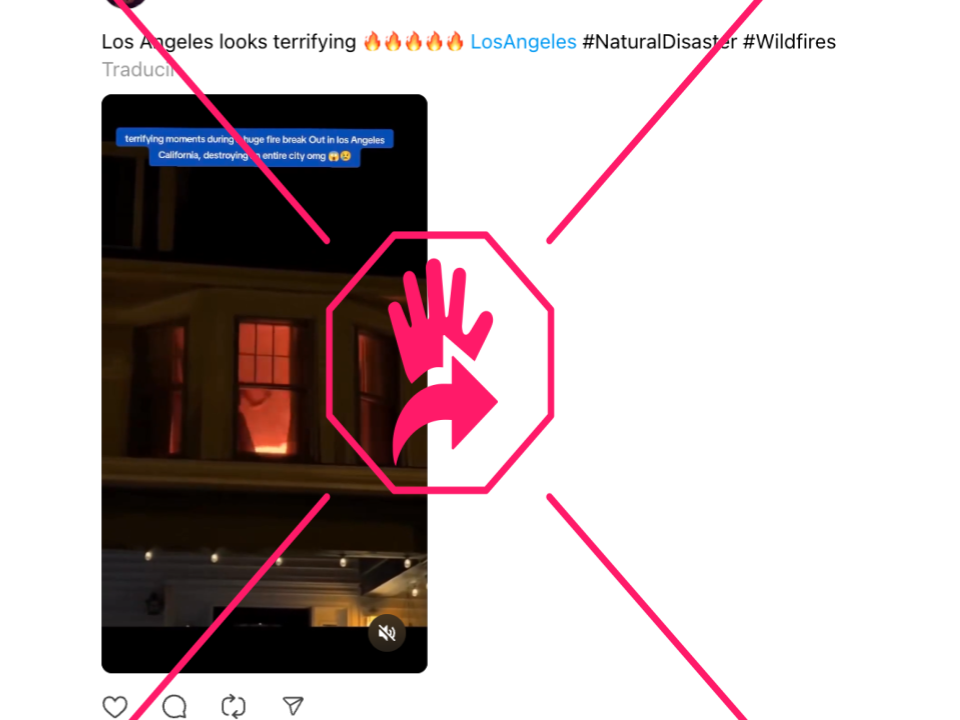 El video de apenas 4 segundos es parte de una secuencia más larga en donde aparecen imágenes de incendios en los que se ven casas, edificios y vegetación en llamas y se señala que se trata de Los Ángeles. El audio de la grabación es una mezcla de gritos de personas que se encuentran a la intemperie y una alarma que se repite en loop.