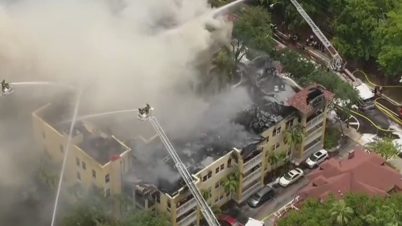 Imágenes aéreas del voraz incendio en un edificio de apartamentos de Miami: esto se sabe de la emergencia