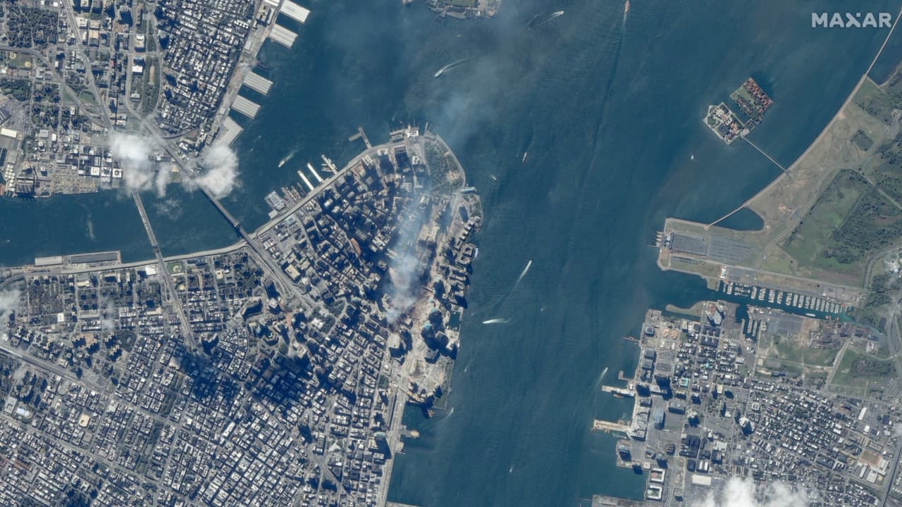 La empresa Maxar Technologies dió a conocer imágenes satelitales del World Trade Center, el Pentágono y Shanksville, Pensilvania, días después de los ataques del 11 de septiembre del 2001.