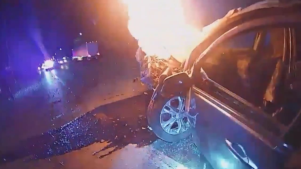 Imágenes sensibles: así rescataron a una mujer atrapada en un auto en llamas