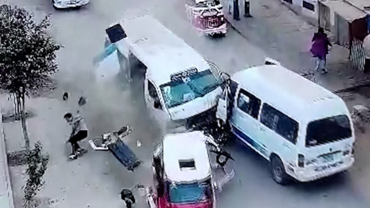 Un transporte público impactó contra otros dos vehículos lanzando por los aires a varios pasajeros que viajaban dentro de la unidad en Lima, Perú. Sigue las últimas noticias en Univision.