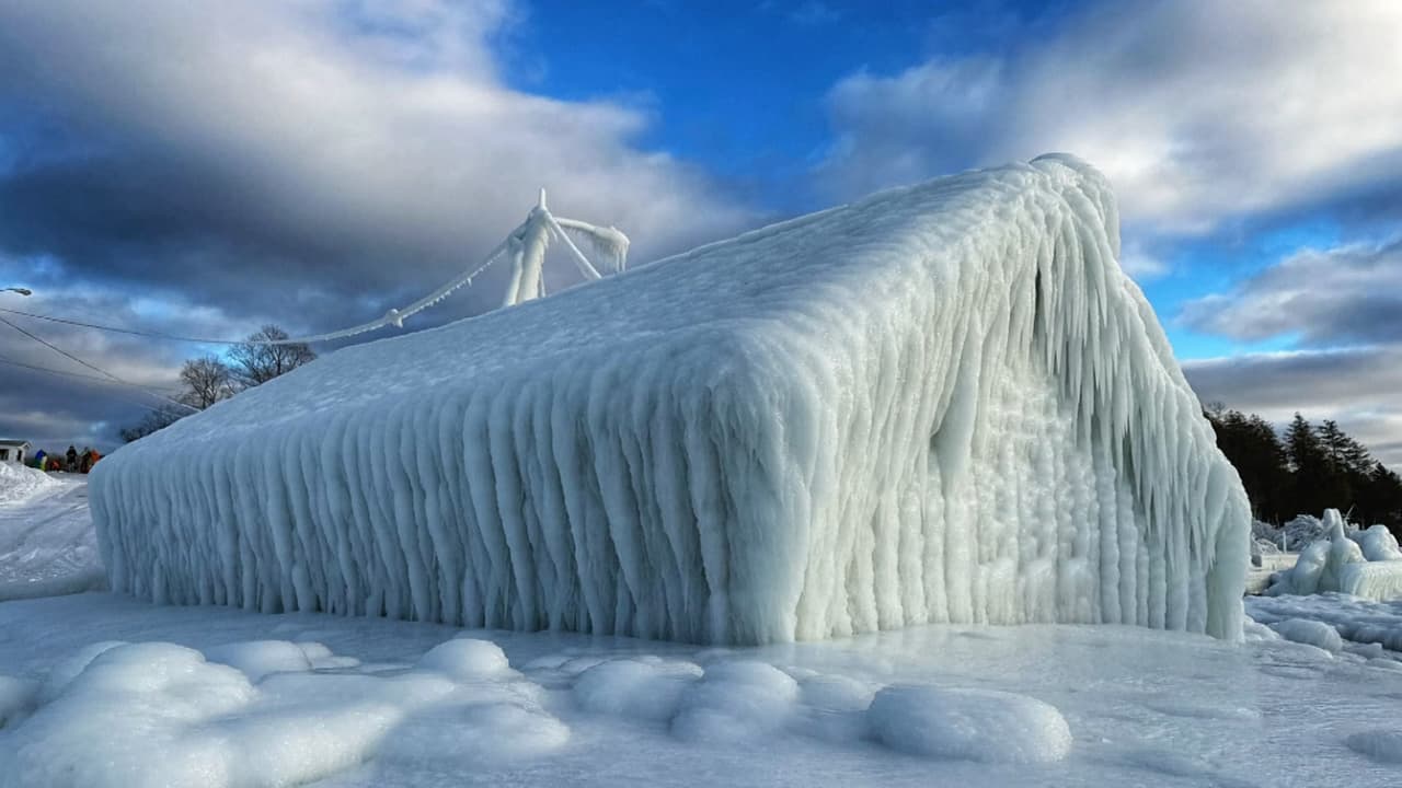 Increíbles esculturas naturales: puentes, cascadas y edificios se congelan asombrosamente durante tormenta invernal