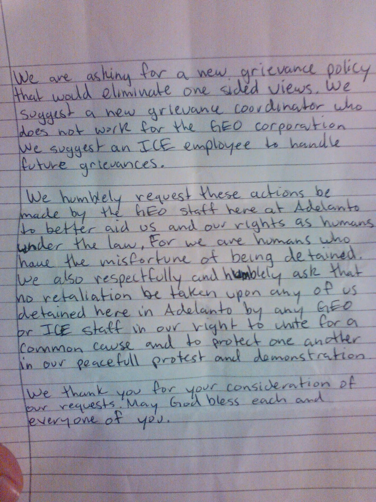 También pidieron, como ahora en Adelanto, que se mejore el trato y la alimentación, y se les conceda libertad bajo fianza mientras se ventilan sus casos en las cortes de inmigración.