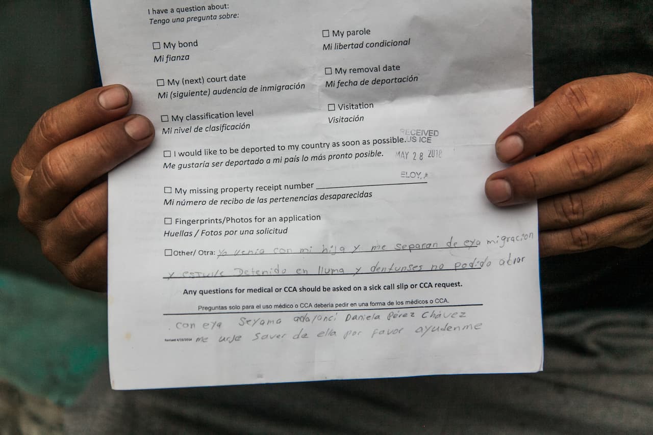 Adayanci fue separada de su padre el pasado 12 de mayo cuando ambos fueron detenidos por la Patrulla Fronteriza tras cruzar a Estados Unidos sin documentos. A él lo mandaron a un centro de detención de Arizona, donde pasó dos semanas antes de ser deportado a Guatemala. Según denuncia el padre, Hugo Leonel Pérez Mazariegos, lo regresaron a su país sin su hija "con engaños”.