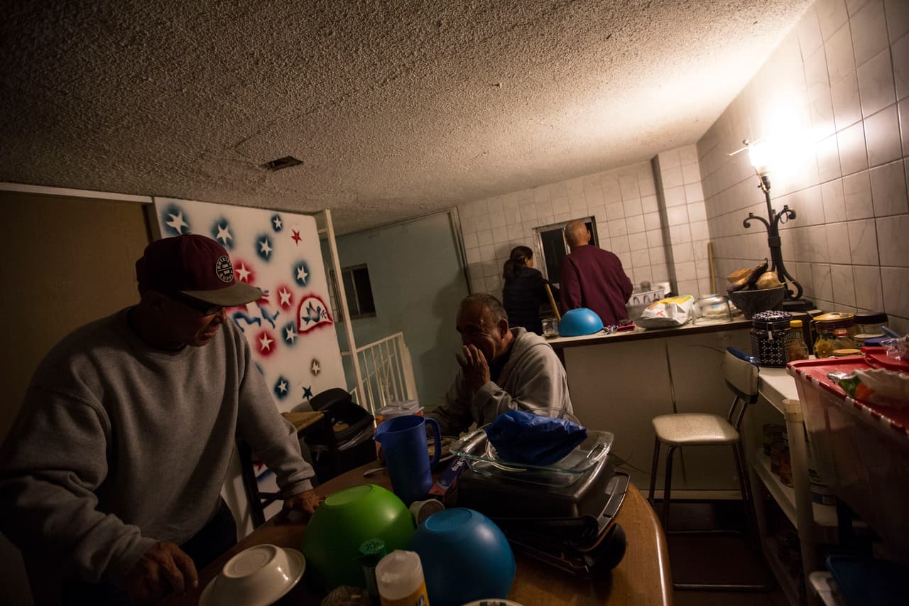 En el búnker de ahora –o la Casa del Veterano Deportado, como se llama– todos tienen tareas. Las conocen porque Barajas, su director, les lee la cartilla al llegar y porque están pegadas en las paredes. Se levantan a las 7:00 am, sin retrasos. Uno barre, otro hace el desayuno, cada quien estira o dobla las cobijas de su catre. Barajas se asegura de que todo se vaya cumpliendo. Hacen las tres comidas juntos y a una hora específica. Las luces se apagan a las 10:00 pm, "porque hay unos que trabajan y deben descansar bien", dice. Hay cierto horario para el uso de los baños. No se pelea, no se roba, no se bebe.