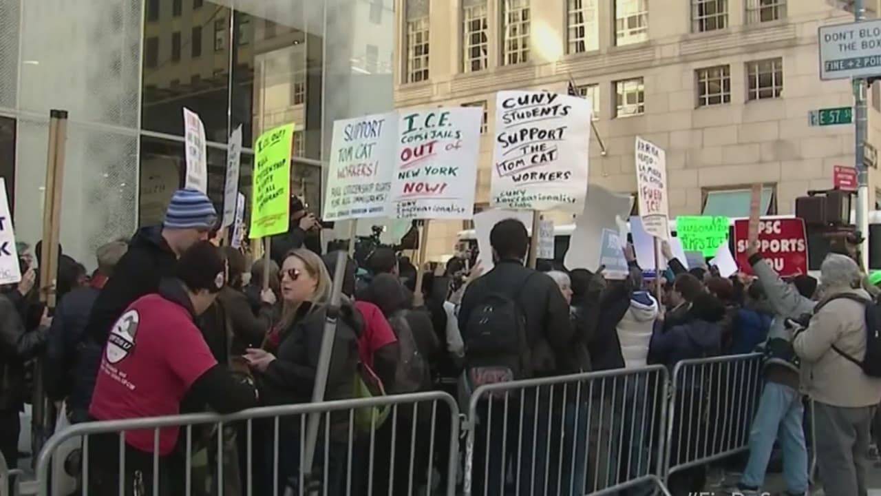 Los manifestantes denuncian que el Departamento de Seguridad Nacional exigió a los trabajadores de Tom Cat Bakery, una panadería artesanal del distrito de Queens, presentar sus documentos de empleo antes del 21 de abril.