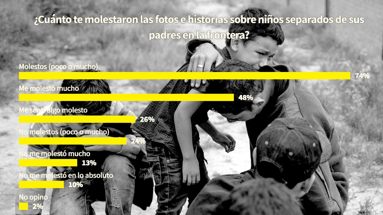 Hubo una pregunta específica sobre el apoyo a la decisión del Presidente de revertir esa política de separación de niños inmigrantes de sus padres cuando estos adultos son acusados de cruzar la frontera ilegalmente. 75% dijo estar de acuerdo con revertirla y 22% prefiere que no.