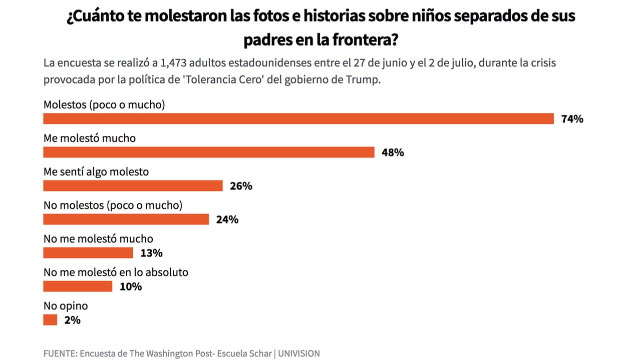 Una encuesta de la alianza entre el periódico y la Escuela Schar entre más de 1,400 adultos reveló que 69% se opone a esa práctica de la política de 'tolerancia cero' y que 75% está de acuerdo con revertirla.
