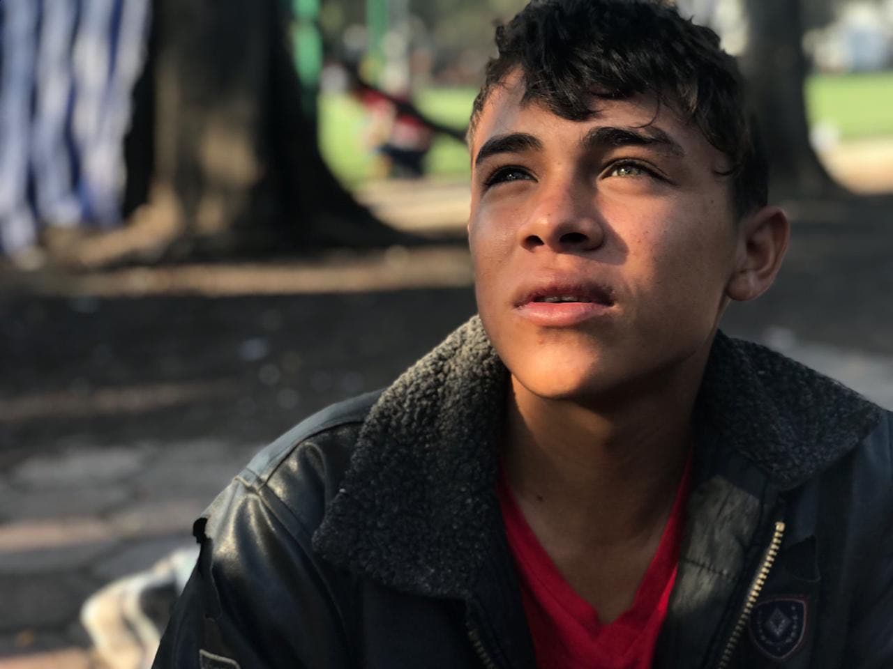 Cristian tiene solo 14 años y viaja solo con la caravana. Aunque dice que se siente contento de estar en la Ciudad de México, no puede olvidar que su familia espera que les mande dinero.