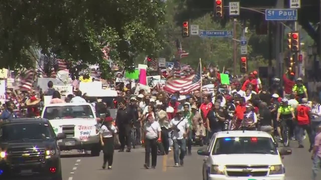 Miles de personas participan en la Megamarcha de Dallas contra las políticas migratorias de Trump