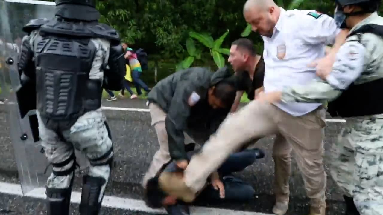 La respuesta del gobierno mexicano llega después de la violenta detención de al menos tres caravanas que intentaron romper los cordones de seguridad instalados por la Guardia Nacional y la policía. En la primera, registrada el sábado pasado, agentes de inmigración no solo empujaron a los migrantes, algunos con niños en brazos, para que no avanzaran. Un video colgado en redes sociales mostró a un funcionario pateando la cabeza de un hombre que se encontraba sometido por varios policías en el pavimento.