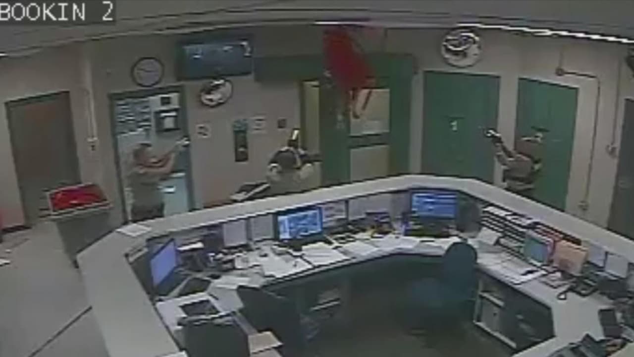 Mientras regresaba de un área de recreación, el interno Blaze Ayers corrió a una sala médica, se encerró adentro y subió al techo. Los policías controlaron al sujeto con pistolas paralizantes.