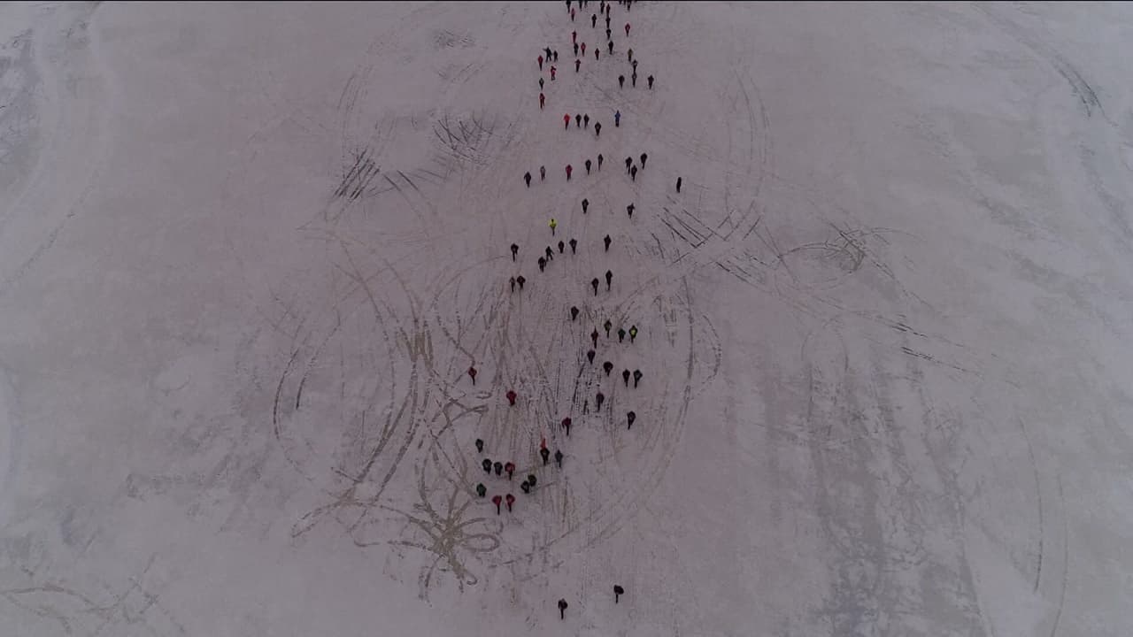 Así corren una maratón sobre un río helado en China para dar la bienvenida al nuevo año