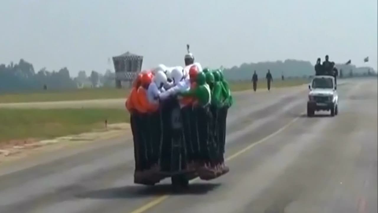 El equipo 'Tornados' de las Fuerzas Armadas indias logró subir a 58 personas en una moto en marcha, y recorrer 0.74 millas. El récord se logró al tercer intento, luego de seis meses de entrenamiento, incluida una estricta dieta para mantenerse a peso.
