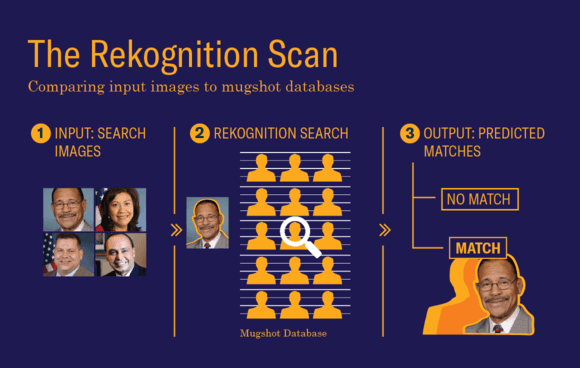 La organización informa que comparó en Amazon Rekognition imágenes de miembros del Congreso con una base de datos de fotos policiales que incluye unas 25,000 fotos policiales disponibles y los resultados dieron 28 coincidencias incorrectas.