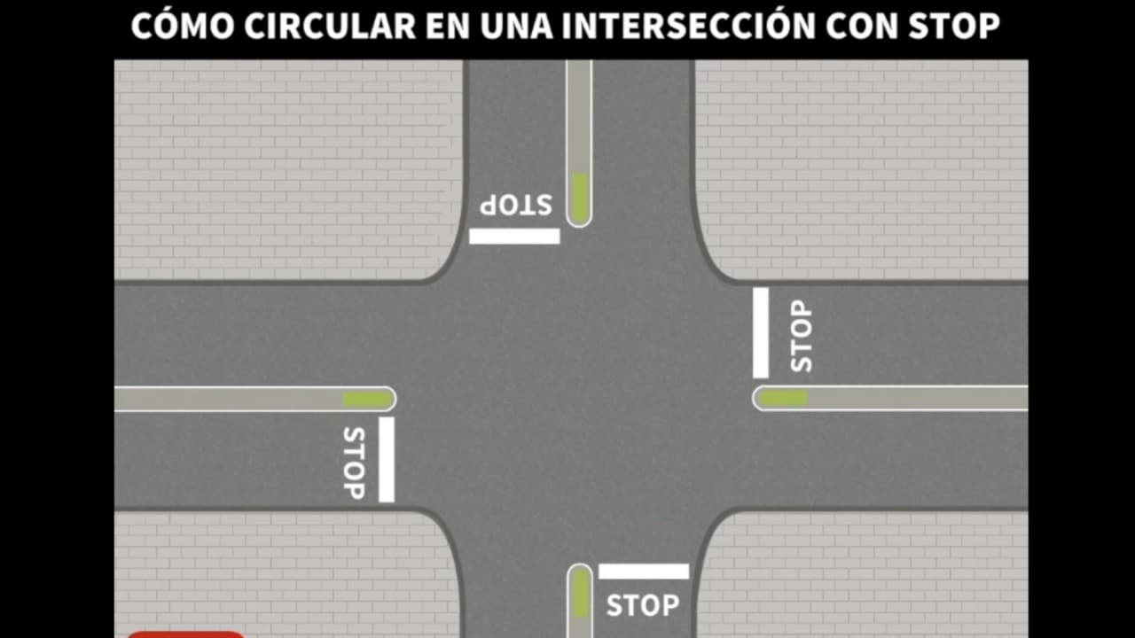 Junto con el cruce regulado con semáforos, es la más común. Siempre deberemos detener el auto al encontrarnos con esta señal. Después, tendrá preferencia de paso el conductor que haya llegado primero.