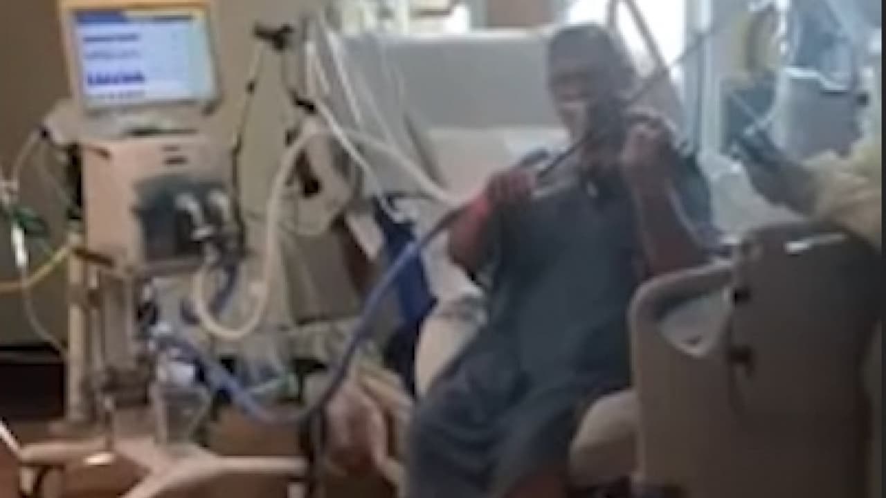 Intubado y con covid-19: un paciente toca su violín en plena sala de cuidados intensivos
