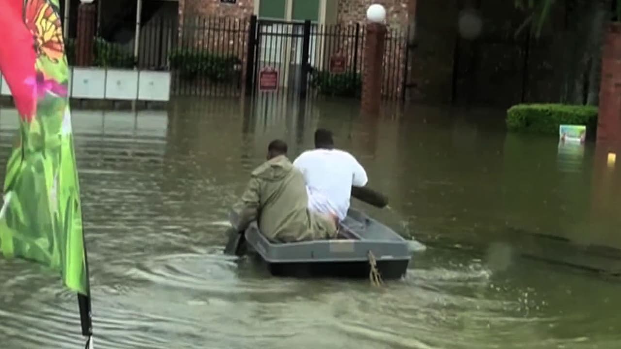 Lluvias torrenciales han causado inundaciones sin precedentes en Baker y Baton Rouge, las brigadas de rescate utilizan botes y motos acuáticas para sacar a las familias de sus hogares. Dos muertos han sido reportados.