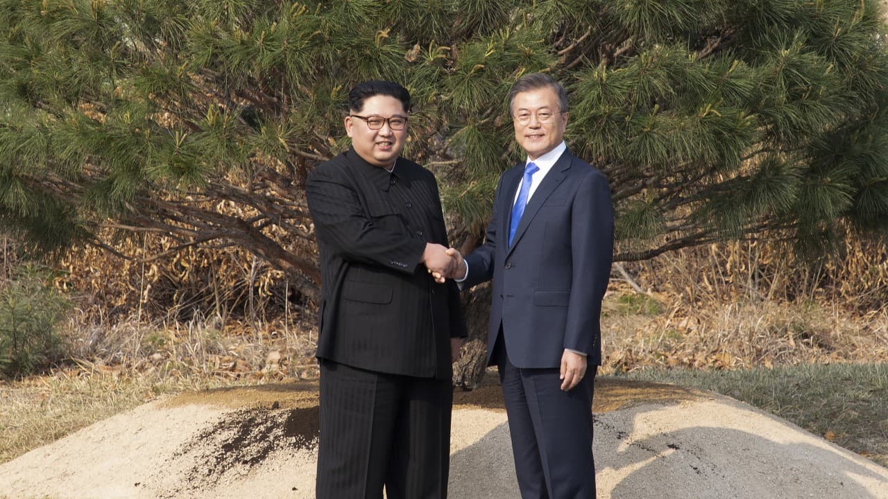 Con el simbólico acto, los mandatarios dieron inicio a su primer encuentro bilateral que terminó con la firma de un acuerdo que busca establecer la paz definitiva y la desnuclearización de la península.