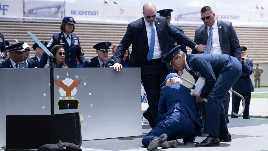 La caída de Biden en una ceremonia de graduación de la Academia de la Fuerza Aérea
