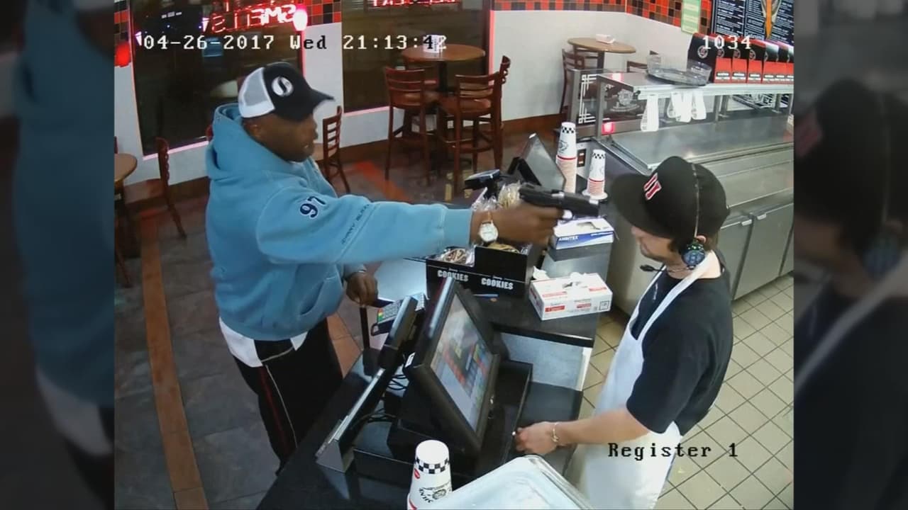 Una cámara de seguridad muestra el momento en que un ladrón pone una pistola en la cabeza de un empleado en un restaurante en Kansas City, Missouri. Aun así, el trabajador logra mantener la compostura y entregar el dinero sin alterarse.