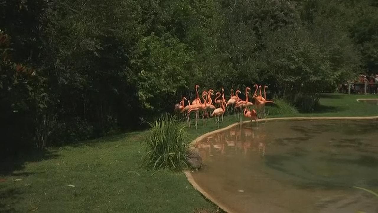 Una bandada de flamencos caribeños aleteó sus alas y se agruparon cuando la luna tapó por completo el sol en el zoológico de Nashville.