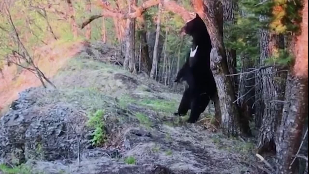 Un ejemplar de oso negro asiático fue captado en el parque Tierra del Leopardo del Lejano Oriente ruso por una cámara de monitoreo, de la que se pudo salvar la tarjeta de memoria con las singulares imágenes.