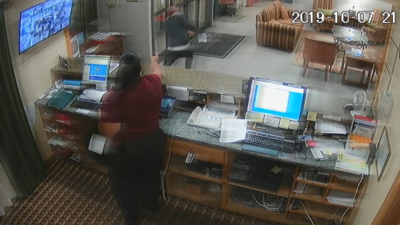 El encapuchado pasó en segundos de asaltar la recepción de un hotel en Paducah, Kentucky, a tener que huir de la recepcionista, que en un astuto y rápido movimiento, se quedó con el arma con la que el ladrón la estaba amenazando.