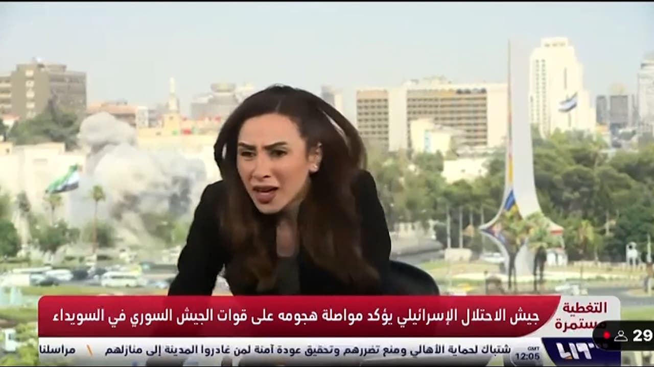 La reacción de una presentadora de noticias en Siria durante un ataque aéreo israelí