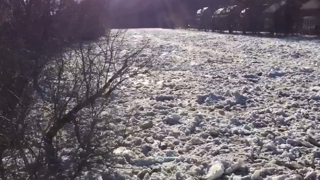 El río Housatonic, a su paso por Kent, parecía una autopista saturada de cubitos de hielo que discurrían poco a poco por las aguas. Tras una ola de frío que congeló ríos y lagos, el derretimiento del hielo está provocando inundaciones y desborde de ríos.