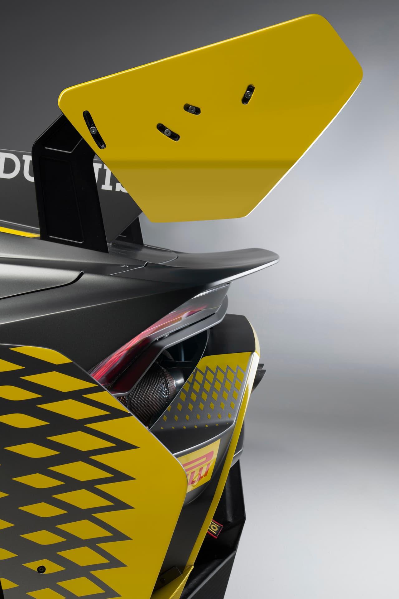 Mecánicamente el auto es el mismo, pero ahora incluye algunos elementos aerodinámicos y gráficos. El ‘body-kit’ ha sido diseñado Dallara Engineering y Centro Stile Lamborghini y mantiene el mismo nivel de ‘downforce’, pero reduce la resistencia aerodinámica y es más eficiente y estable a altas velocidades.