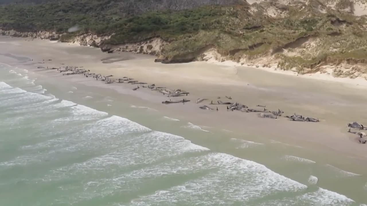 Las 145 ballenas que murieron varadas en una playa de una isla remota de Nueva Zelanda