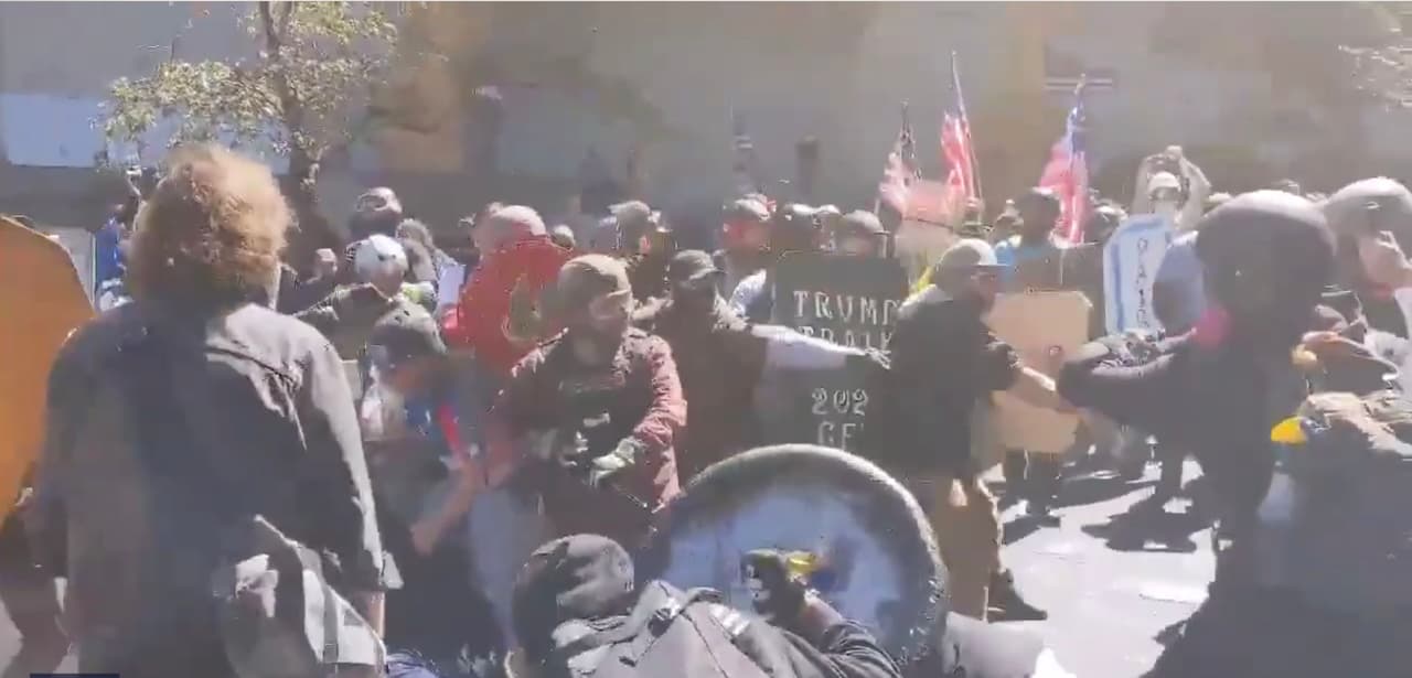 En varias partes de la ciudad, la caravana de seguidores de Donald Trump se enfrentó violentamente con manifestantes de ‘las vidas negras importan’, escalando la guerra entre grupos de ultra-derecha y los movimientos anti-racismo. Más noticias aquí.