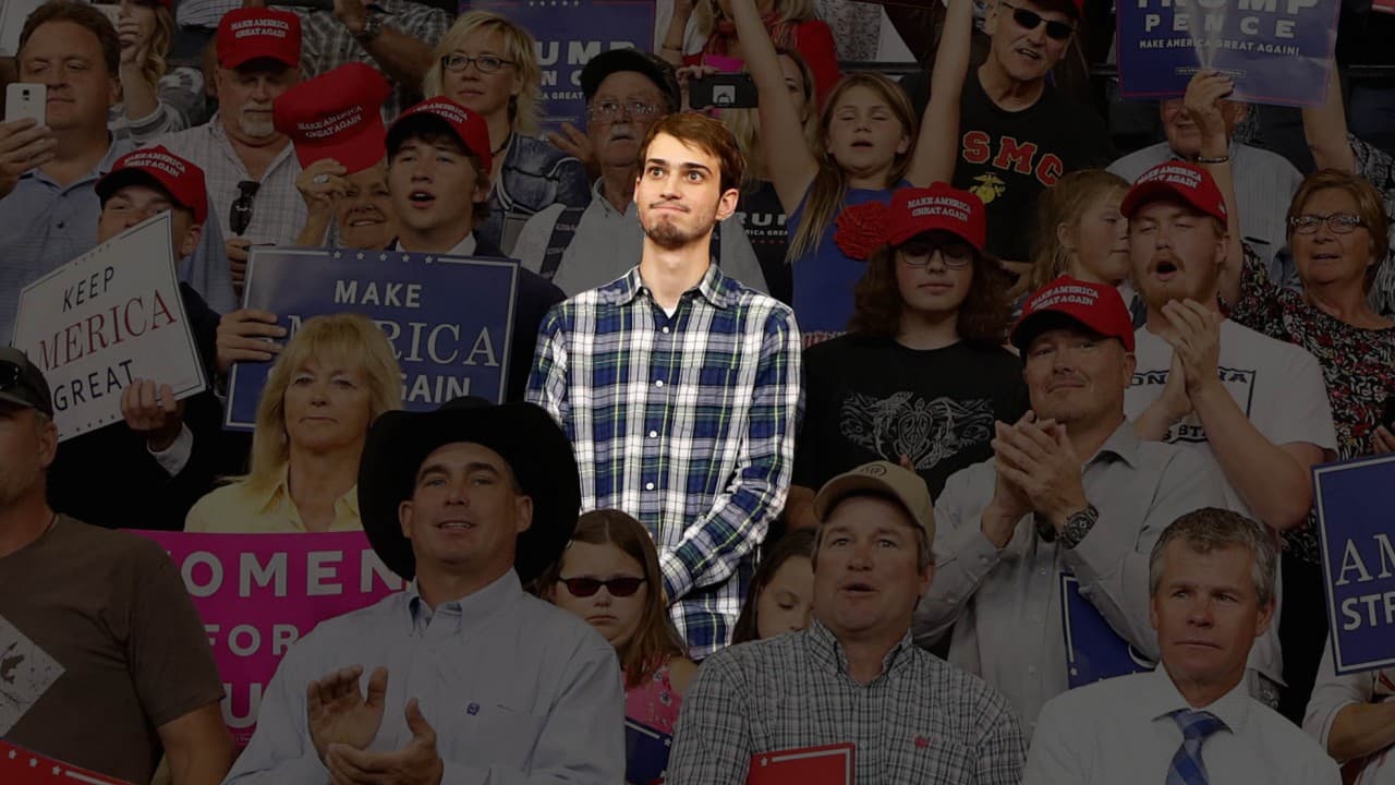 Las muecas del joven de la camisa de cuadros que se burló de Trump en vivo y directo