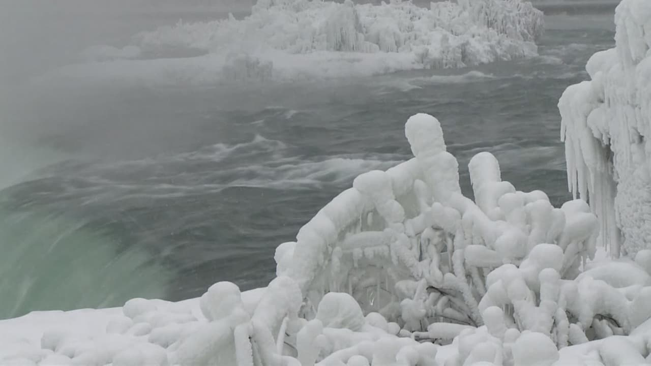 Las tormentas invernales congelan parte de las cataratas del Niágara