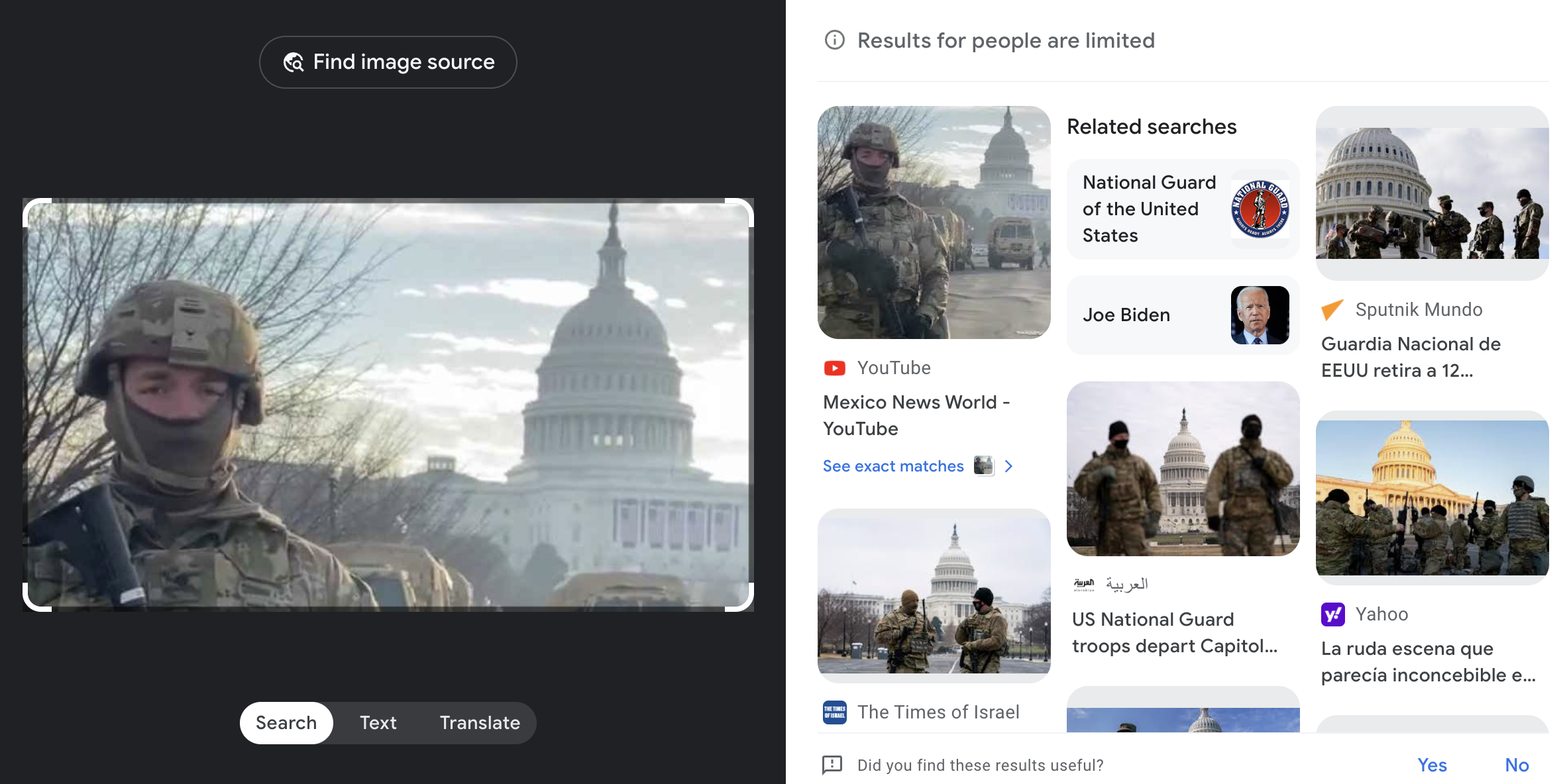 Es falso que la grabación que circula en Facebook corresponda a la supuesta declaratoria de “ley marcial” en Estados Unidos. Al hacer una búsqueda inversa de imágenes a partir de fotogramas clave de la secuencia del video, elDetector corroboró que las imágenes en realidad son del despliegue de tropas ocurrido en enero de 2021, en medio de tensiones tras el asalto al Capitolio, el segundo impeachment de Trump y la toma de posesión de Biden. Lee aquí cómo escogemos y asignamos nuestras etiquetas en elDetector.